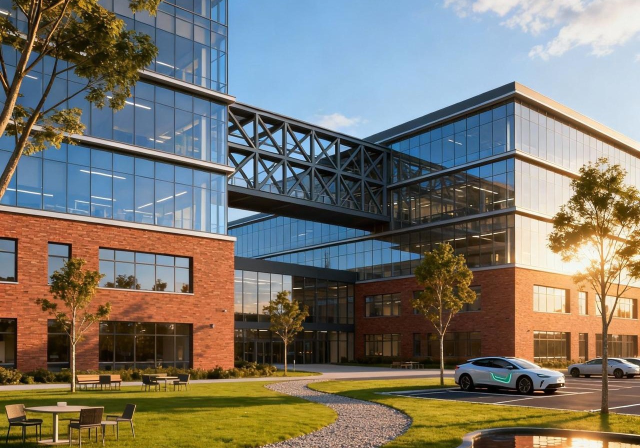 for modern office environments. Built using thermally efficient materials and nature-integrated planning, the campus is designed to remain